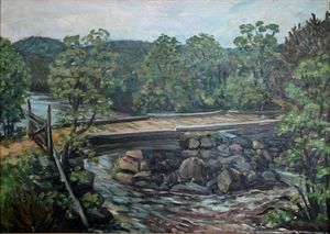 Den gamle brua over Kilsbekken. Maleri av Gustav Braadland 1946
