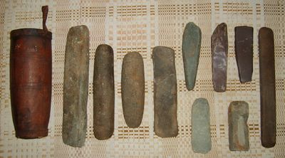 Brynestokk (t.v.) og et utvalg av bryner i ulike materialer, former og størrelser.