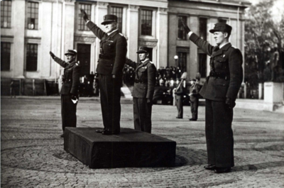 Frølich Hanssen hilser AT under en parade på Universitetsplassen i Oslo.