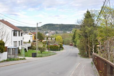 Den er relativt lang, og krysser eller er tilstøtende til en rekke andre veier: Korsvollbakken, Heierstuveien, Tåsenveien, Korsvollbråtan, Åmotveien, Havnabakken, Steingardveien, Bålveien, Nilserudkleiva, Jansbergveien, Peder Ankers vei, Holsteinveien og Kongleveien.