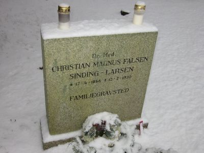 Christian Magnus Falsen Sinding-Larsen er gravlagt i familiegrav på Vestre gravlund i Oslo. Tittelen Dr. med. er benyttet på gravminnet.