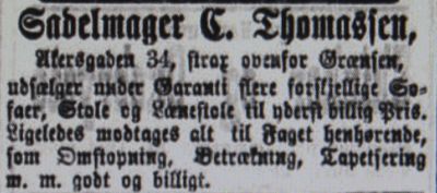 - Aftenposten 26. juni 1878: Annonse for Sadelmager C. Thomassen