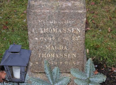 Christoffer Thomassen er gravlagt på Vestre gravlund i Oslo. Tittelen Møbelhandler er benyttet på gravminnet.