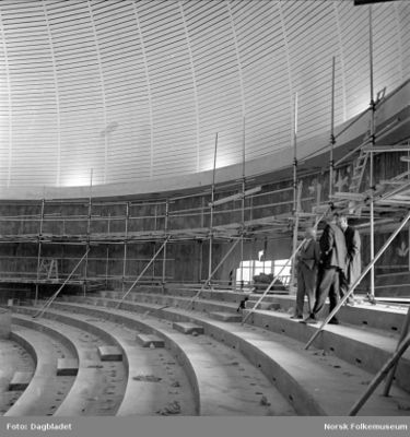 Under bygginga brøt det igjen ut brann. Den 21. november 1963 tok det fyr i asfaltoppløsningen som ble brukt til å lime isolasjonsmaterialet. 170 kvadratmeter med isolasjonsplater ble skada, men betongen var like solid. Det verste med denne brannen var at man fikk enda dårligere tid. 8. januar 1964 skjedde enda en alvorlig ulykke, da et stillas raste. Tre arbeidere som sto øverst på stillaset, 32 meter over gulvet, falt ned. Fem andre fikk stillaset over seg, mens resten av de 15-20 som var inne i salen kom seg unna. Igjen var det bare som ved et under at alle overlevde.