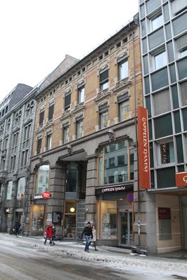 - Dagbladet og konfektforretningen «Central», Akersgata 36.Foto: Narve Skarpmoen (1910-åra).