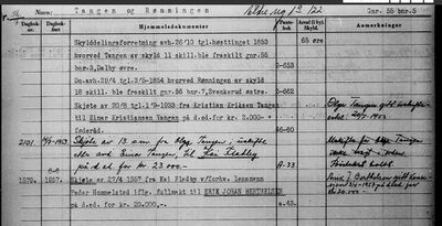 - Skjøte på «Tangen» fra Oliv Børresdatter til Lars Larsen, tingl. 12.12.1853.