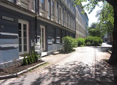 Gata er delvis opparbeida som gatetun.