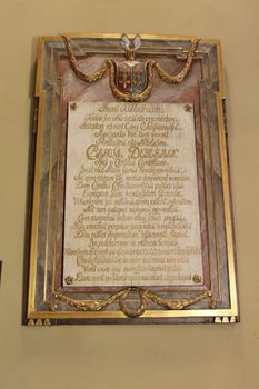 Minnetavle over bibliotekets grunnleggelse og Carl Deichman. Tavla henger i trappa på hovedbiblioteket.