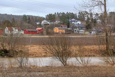 Parti fra den nordvestligste delen av Delingsrudveien med elva Hæra i forgrunnen.