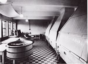 Tidstypisk interiør fra et mysostkokeri i mellomkrigsåra)
