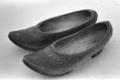 | På 17 år tenkjer eg at eg gjorde umlag 700 par tresko i gjennomsnitt i året. Eg køyrde lass etter lass nedetter dalen og selde på handelsbuine, so eg løyste meg snart frå adde mi skulli', og ha enno atte te mat'e og kaffi og anna[2] | ||