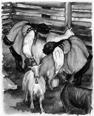 Buskapen åt Andres og Anne i 1875 var 2 kyr, 1 kalv, 5 sauer og lam og 12 geiter og kje. I tillegg kom 1 kvige og 6 sauer som høyrde til Eli Olavsdotter, mor åt Anne, som budde ilag med dottera og mannen hennes etter at ho hadde kome i enkestand (sjå Holenplasset).