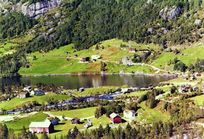 | Holen 1965. Myri nærast, Der uppe attom. Foto: Fjellanger-Widerøe