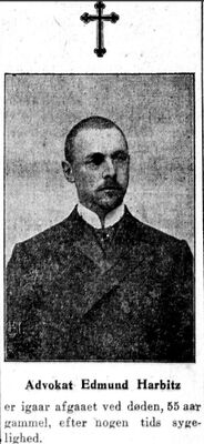 Edmund. Harbitz ble cand.jur. i 1884 og advokat i 1889. Han etablerte i 1890 en advokatforretning sammen med Christian Fredrik Michelet (1863-1927).