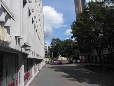 Motiv fra Edvard Storms gate i Oslo. Pilestredet park ses i bakgrunnen.
