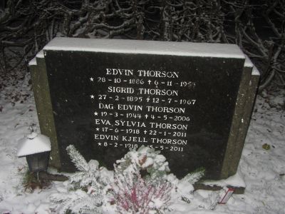 Edvin Kjell Thorson er gravlagt på Nordstrand kirkegård i Oslo sammen med blant andre kona og foreldrene.