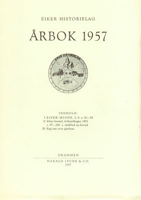 - Eikerminne 1957. Utg. Eiker historielag. 1957. Digital versjon på Nettbiblioteket.