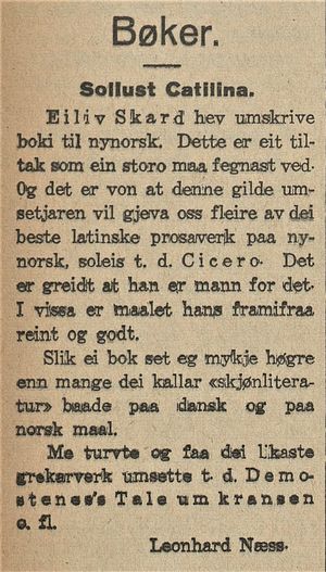 - Aftenposten 2. oktober 1978: nekrolog over Eiliv Skard av Egil Kraggerud.