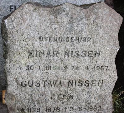 Einar Nissen er gravlagt på Ullern kirkegård i Oslo sammen med sin kone. Tittelen overingeniør er benyttet på gravminnet.