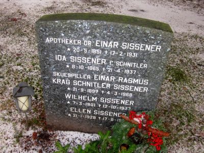 Einar Sissener er gravlagt i familiegrav på Vestre gravlund i Oslo. Tittelen Skuespiller er benyttet på gravminnet.
