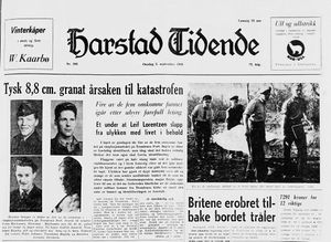 Harstad Tidendes hovedoppslag på førstesida tirsdag 2. september lød: «Ammunisjonslager på Trondenes eksploderte - fem savnet», som ble fulgt opp av ingressen «Granater og granatsplinter haglet over Trondeneshalvøya. Umulig for redningsmannskapene å trenge inn i området».