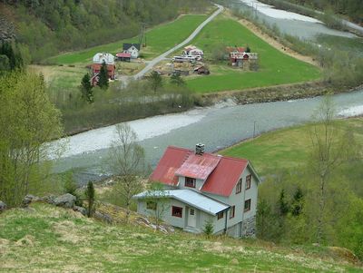 Elvøy har vore utsett for flaumane i Jostedøla, men det er i nyare tid bygt elveførebygnad langs heile grenda.