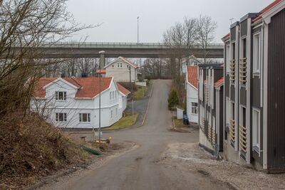 Parti fra Elvegata med Sandesundbrua i bakgrunnen.