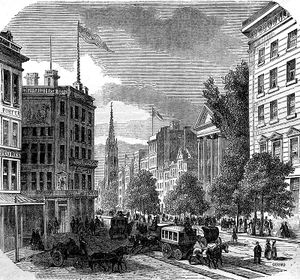 Jeg er kommen tilbage fra en Tour igjennem Broadway til Bankierernes og Pengeinstituternes bekjendte ’’Wallstreet’’. Med godt Følge af Mr. Chapins Søn fandt jeg frem til min Bankier, hos hvem jeg fik Anviisning af 500 Dollar (ca NOK 100.000 i 2018) paa ’’the national bank’’; med disse Penge har jeg antagelig mere end nok for at naae til San Francisco; antagelig behøver jeg ikke mere end 300.