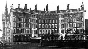 Samme Dag toge Callevig og jeg videre til London – omkring 30 norske Mile i 5½ Time med 5 Stoppesteder. Toget brusede afsted i en aldeles rasende Fart; men godt gik det og heelskindede naaede Vi frem. Fra Hull thelegrapherede jeg til min Fætter Vibe , Rectorens Søn, at jeg kom og bad ham møde (antagelig er dette Niels Andreas Vibe (1834-1929), senere byråsjef i Finans- og Tolldepartementet). Paa Stationen i London, ’’Kings Cross’’ var dog ingen Fætter; fra Callevig skiltes jeg her, - og der stod jeg temmelig net igjen, ’’alene i London’’, i noget forfærdelig Storartet og iblandt en til alle Kanter drivende og rivende Menneskemasse, thi maatte jeg da se at bruge min Smule Engelsk, og saa kom jeg til ’’Great Northern Railway Hotel’’.