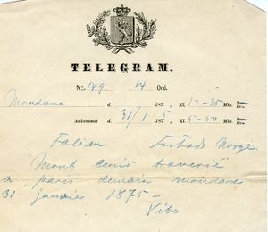 Hvorlænge jeg bliver i Paris!? Sandsynligviis til 15 eller 16de Februar, saa at Du altsaa, efter at have modtaget disse Linjer ei kan skrive mere til mig. Hvilken Route, jeg tager hjemover, veed jeg ikke. Da jeg i hvert Fald maa op til Havre, bestemmer jeg og kan jeg først derfra bestemme, enten jeg tager directe eller over Hamburg. Det er mig høist fortrædeligt af dit Brev at se, at Dampskibet Kong Magnus’s Route imellem Christiania og Havre endnu ikke er fastsat. Med min egen Person kan jeg komme frem over Hamburg o.s.v., men at tage alle mine Sager med den lange Vei, vil volde mig et Besvær, som jeg for enhver Priis maa søge at undgaa; men hvorledes? That is the question!