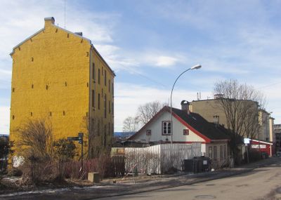| 69 | 1917 | Industrilokale | Oppført 1917 for Jøtul ovnsstøperi, og senere utvidet utover 1950-, 60- og 70-tallet. Her sto tidligere også eldre bygninger fra Kværner Brug. Jøtul flyttet produksjonen i 1981, bygningene ble ombygget i 1989 og har siden huset en rekke forskjellige virksomheter. Siden 2018 har deler av bygningene fungert som atelier for graffiti og gatekunst under navnet Atelier Oblivion, med et stort antall større verker som senere også er utgitt i bokform.[1] På baldakinen over hovedinngangen står et klokketårn med fabrikklokka fra den eldste bygningen som sto på området.[2] Bygningene er planlagt revet og erstattet av boligbygg innen 2030. | |