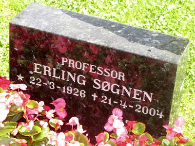 Erling Søgnen ble bisatt fra Asker kapell 29. april 2004, men er gravlagt på Vestre gravlund i Oslo. Tittelen Professor er benyttet på gravminnet.