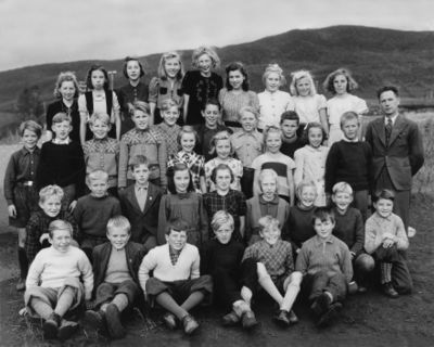 • Tredje rekke fra venstre: Lærer Otilie Isaksen (Tella) - Oddrun Hansen - Jorunn Solsvik - Margit Solsvik - Anne Marie Solsvik - Vally Stoltenberg - Aud Bergersen - Aud Rustad - Sofie Bjørkholdt.