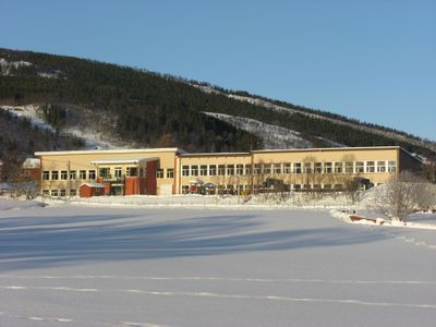 Skolebygningen i Ervik, bygd 1963 og utvidet i 1982.