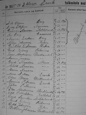 - Tredje rekke fra venstre: Lærer Otilie Isaksen (Tella) - Oddrun Hansen - Jorunn Solsvik - Margit Solsvik - Anne Marie Solsvik - Vally Stoltenberg - Aud Bergersen - Aud Rustad - Sofie Bjørkholdt.