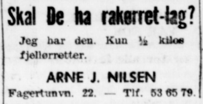 I 1959 var det Arne Jacob Nilsen som åpna Arne J. Nilsen Kjøtt og Kolonial. Han ga seg i 1967 og overtok Høn Landhandleri. Etter dette var det H. Lystad som annonserte som butikkdriver i Fagertunveien 22.