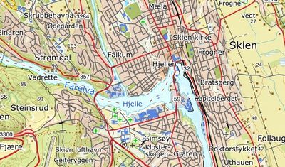 Elva er sitt utspring i Eiangsvatnet (632 moh.) og Økteren (469 moh.), sørvest for Skrimfjella i Buskerud, og dannes ved samløpet mellom Bøelva og Hoppestadelva ved Venstøp. Den munner ut i Skienselva i Hjellevannet ved Falkum i Skien.