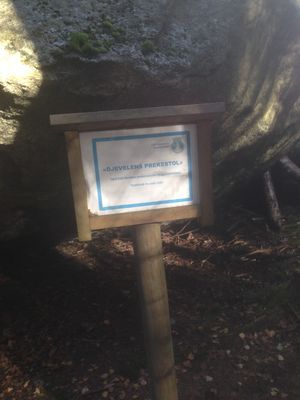 Fandens prekestol, Djevelens prekestol eller bare Nuggerudsteinen ligger ved blåmerket sti fra Nuggerud til Haukåsen, der det på turkartet er merket av et utsiktspunkt på Bjønnåsen. Lignende steiner finnes flere steder i Østmarka, blant annet en anonym stein ved Svartoren, Trollstein på stien opp Tømmeråsen fra Krokhol og den gedigne Gaupestein i Sørmarka.