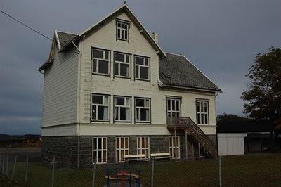 Skulen var bygd frå 1918-1920. Han hadde 2 klasserom i fyrste høgda og lærarbustad på loftet. Då denne skulen vart bygd vart den gamle skulen frå 1871- som var den første fastskulen på øya - riven og flytta til Valderøya. Dei sløsa ikkje den gongen!