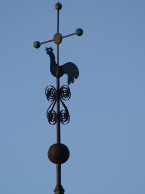 Av eksteriøret finn ein tårnhanen som er gjenbruk frå Rinde stavkyrkje. Denne koparskulpturen er frå 1702-1704, i fylgje B. E. Bendixen sitt upubliserte manus. Ein del av materialbruken i sjølve kyrkjebygget stammar truleg og frå Rinde stavkyrkje.