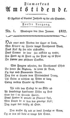 Allerede i oktober 1831 dro Rasmussen nordover, men reisen og forberedelsene til utgivelsen tok tid. Pressen var i mars 1832 på plass i bakgården til P. Hanssen & Co, i Sjøgata 8. De inntegnede abonnentene hadde imidlertid begynt å bli utålmodige, og Birch fikk da ordnet med en midlertidig utgave i Christiania, der det første nummer av Finmarkens Amtstidende, et ugeblad af blandet indhold og for alle stænder utkom den 2. januar 1832, trykt hos F. Steen, under redaksjon av Peter Andreas Brandt. Han hadde to brødre i Tromsø, var oppvokst nordpå og kjente forholdene der. Etter planen skulle denne avisen bare utkomme inntil Rasmussen kom i gang i Tromsø, men veien var lang og postgangen treg, og det endte med at begge avisene utkom både i juli og august dette året. I Christiania kom det ut 35 nr. i perioden 2. januar–25. august 1832.