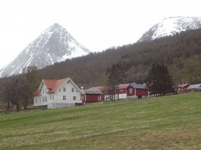 Gården Skjærstad med Nontind og Meraftesfjellet i bakgrunnen.