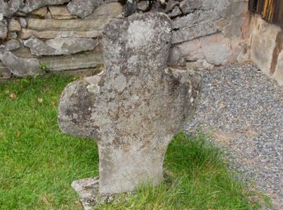 Det står to uthogde steinkors på kirkegården. Det ene er på 67 x 58 cm og står på en ny fot. Det andre er 85 x 80 cm, og er ifølge tradisjonen satt opp over «skinnbroklensmannen».