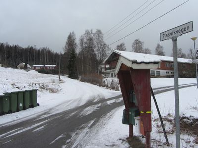 Motiv fra Flesvikvegen i Feiring i Eidsvoll kommune.