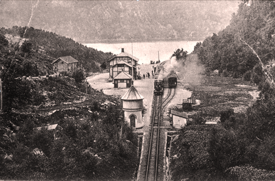 Flikkeid stasjon oversiktsfoto ved åpningen 1904.