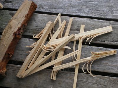 Det er en kunst å spikke fliser som krøller seg riktig. Det er ikke så vanlig å fluse opptenningsveden som før. Nå finner vi som oftest litt kvist eller finere ved, eventuelt briketter til opptenning.