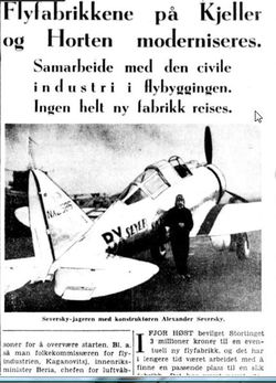 - Tror direktøren det er mulig å få kjøpt en moderne amerikansk jager? Seversky har jo været på tale ….. Jeg tror ikke det er nogen vanskelighet med å få kjøpt det vi ønsker i Amerika. USA var meget favorabelt innstillet overfor Norge og de andre nordiske landene. En møtte en imøtekommenhet overfor Norge som aldri før. Man var svært interessert i å få vite hvordan vi ledet vår industri, hvordan vår sociallovgivning var osv. Kronprinsparets reise har også været til stor fordel for oss på mange måter.»