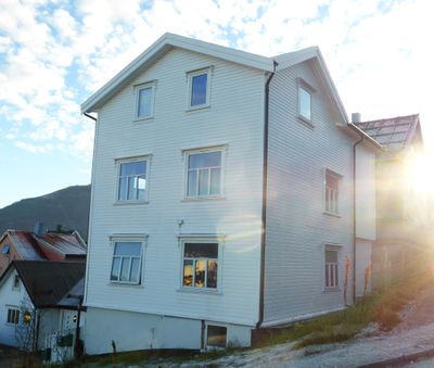 Fogd Dreyers gate 33 i Tromsø er det siste huset i gaten, som ender i Skriverplassen.