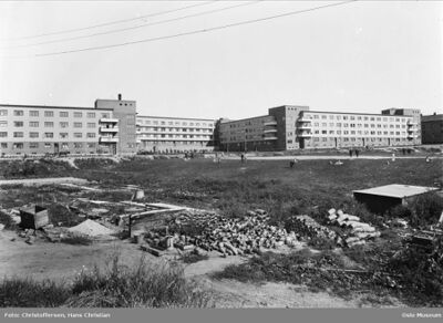 - Folkvang med deleer av bebyggelsen mot Hans Nielsen Hauges gate.Foto: Karl Harstad/Oslo Museum (ca 1940).