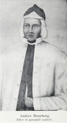 Anders Haneborg på et maleri fra 1810, fotografi fra Haneborg-familiens stamtavle. Anders Haneborg (født 15. januar 1767, død 31. juli 1847) var gardbruker og stortingsmann. Han hadde i sin ungdom en militær karriere, og deltok i både tyttebærkrigen i 1788 og krigen mot Sverige 1814. Som gardbruker drev han slektsgarden Mellom-Haneborg i Aurskog, der han videreførte farens arbeid med å drive garden på dyktig vis. Haneborg satt på to storting, i 1818 og 1821, der han markerte seg mot gamle privilegier i flere saker. Les mer …